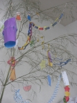 それぞれに願い事を短冊に込めて、笹に飾りつけ♪