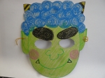 以前作った鬼のお面を被り、「鬼は外〜!」、「福は内〜!」
