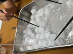 みんなでグルグルかき混ぜて氷水に塩を溶かしました。