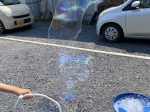 食器用洗剤に洗濯糊や砂糖も加えたシャボン玉液を作って大きくても割れにくいシャボン玉になりました。