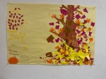 1枚の模造紙にみんなで絵を描いたり、折り紙を切り抜いて貼ったり、ちぎって貼ったりしながら、秋の風景を作りました♪
