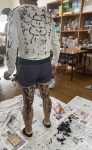 スタッフが「てるてる坊主」役となり、こどもたちは墨やマッキーで服と顔に落書きをしました!